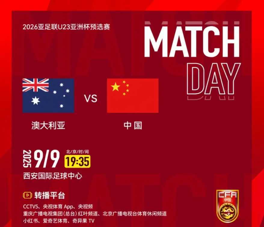 今晚19点35,U23国足vs澳大利亚队生死战,CCTV5全程直播,让我们一起为中国队加油,1-0=爆冷出线。